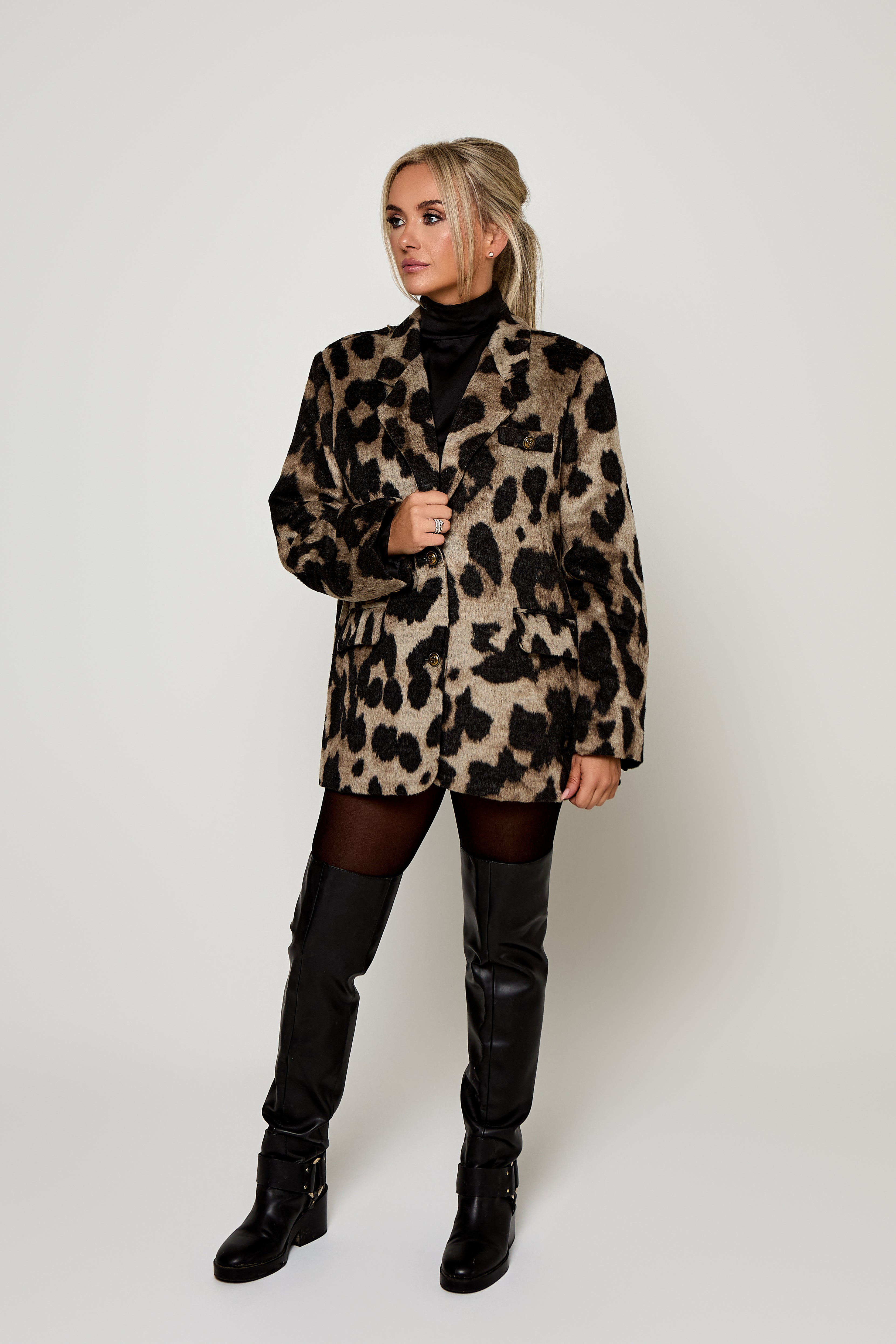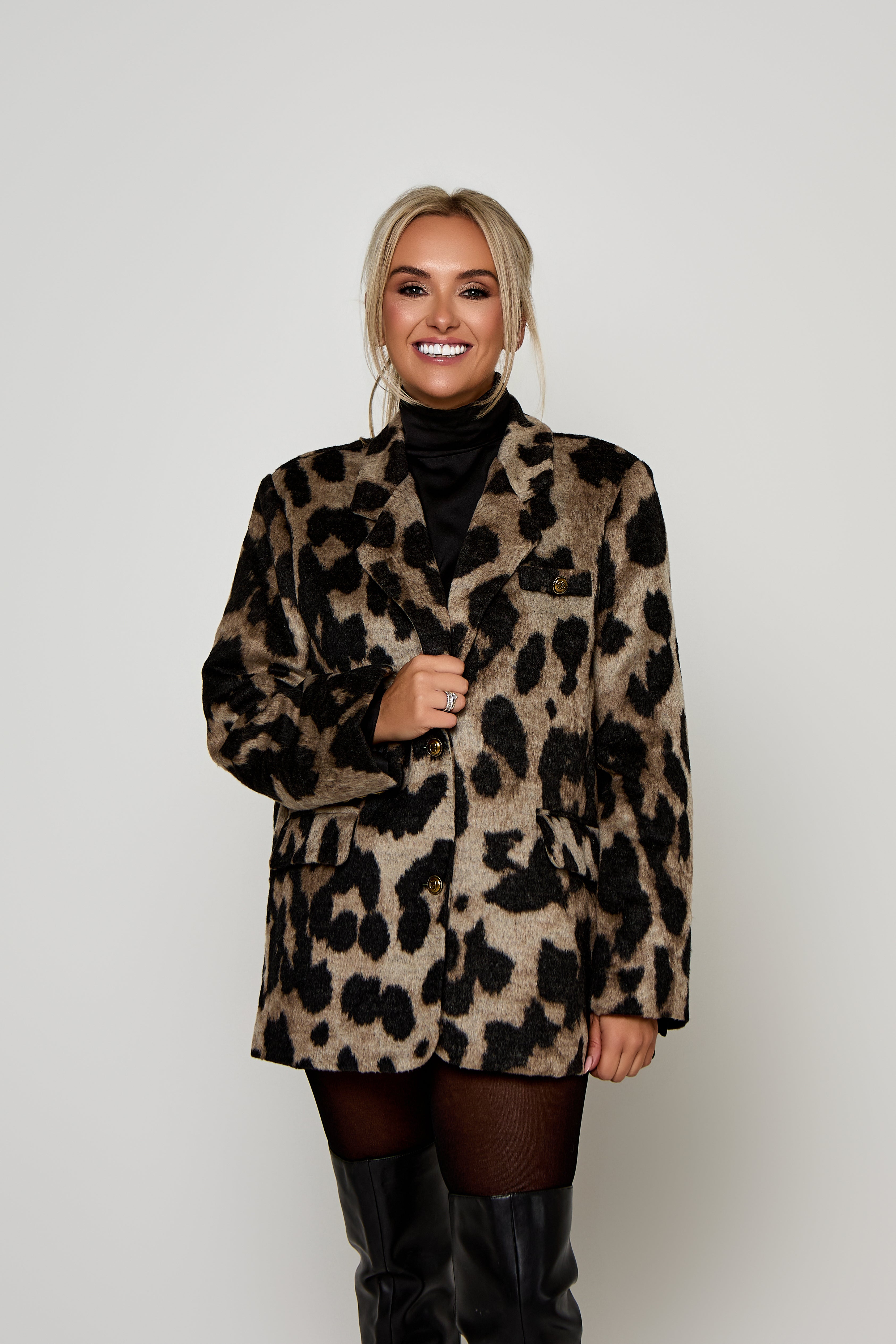 The Cassidy Blazer — Women’s Leopard Wool Oversized Tailored Blazer