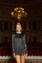 Designed for elegance with edge, FAVELA showcases a structured sleeve that softens into a slight bell shape extending gracefully over the hands. At the neckline, a striking row of oversized pearls adds a touch of opulence, making this piece instantly iconic.