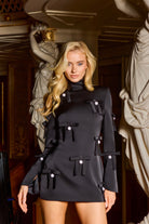 Introducing the SUKI Pearl Bow Dress, a show-stopping satin mini dress crafted for the woman who loves structure, glamour, and couture-level detailing. This fully lined silhouette is designed to sculpt, flatter, and captivate from every angle.