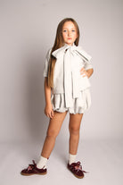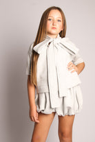 The bow-tie sweater top adds a cute, feminine twist, while the puff-ball shorts with an elasticated waistband and hem keep the look relaxed yet polished. Crafted from soft, sweater-style fabric, it’s as comfy as it is chic — ideal for everyday wear or dressier days out.