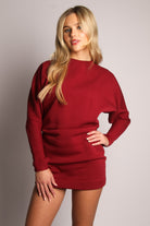 The perfect dress for fashion-forward teenagers who want comfort and style in one. This burgundy sweater dress features trendy batwing sleeves and a classic round neckline — effortlessly cool for weekends, parties or hanging out with friends.