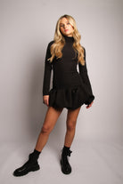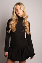 Crafted from luxury black crepe fabric, the VADA Dress features a flattering tight-fitting silhouette with a high neck and concealed zip-up back for a polished finish. The voluminous puff-ball hem adds a dramatic, statement-making touch that brings movement and personality to your look. This is the dress for the girls who aren't afraid to stand out.